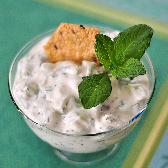 Lavare e grattugiare il cetriolo con la buccia, mettere in un colino e lasciare andare via l’acqua per almeno un’ora. Poi strizzare (volendo, con il dorso di un cucchiaio), Tritare l’aglio e renderlo crema. Aggiungere 1 cucchiaio scarso di limone, poi versare olio di oliva e aneto tritato. Sale q.b.. Mescolare.