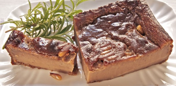 Unire farina, sale, acqua (composto liscio, omogeneo ma sodo). Porre in teglia unta. Quindi cospargere con pinoli, uvetta (precedentemente ammollata e strizzata), rosmarino, un filo d’olio nella parte superiore. In forno a 200° per 25 minuti. Quindi, dopo cotto, decorare con rametti di rosmarino.